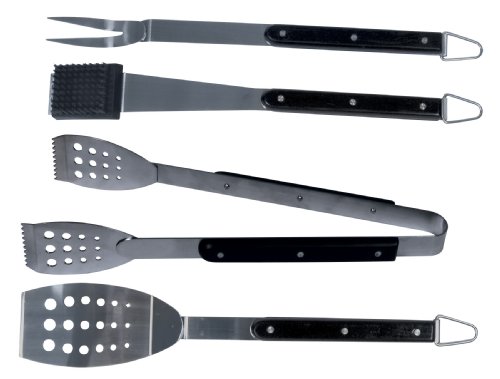 - 4-piece stainless steel barbecue tool set handles all your grill tool needs